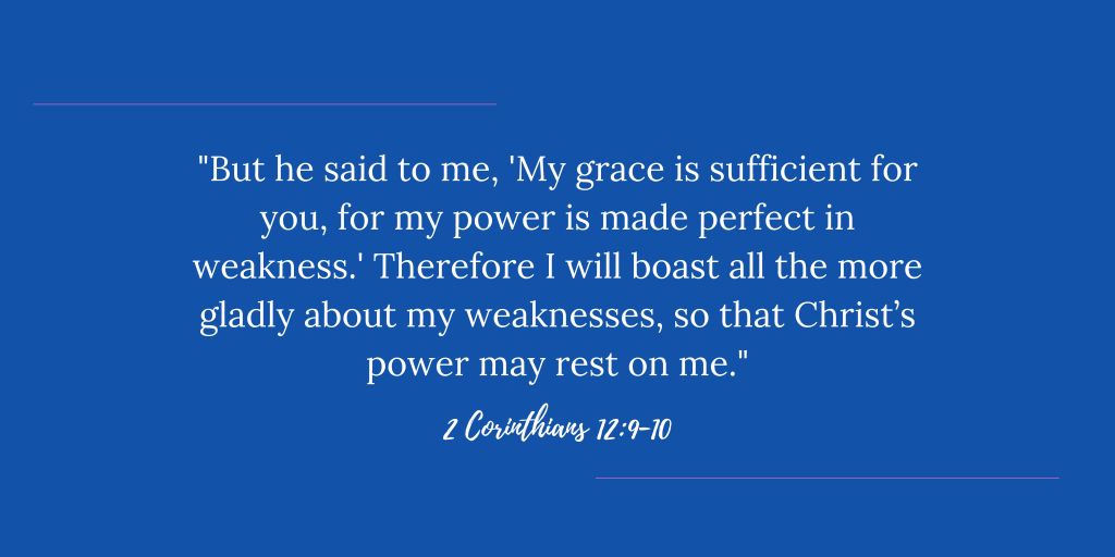 I had said “yes” and then Benny recited it perfectly for me, “My grace is all you need. My power is strongest when you are weak.” The verse had thrown me so off guard that later I had looked up the entire passage.